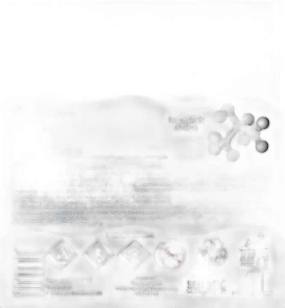 Pojemnik: 1000 ml (1 litr), płyn bezbarwny o charakterystycznym zapachu. Przechowywać w miejscu suchym, chłodnym, daleko od ognia i źródeł zapłonu. Temperatura przechowywania: 15–25 °C. Łatwopalny – klasa zagrożenia F+.